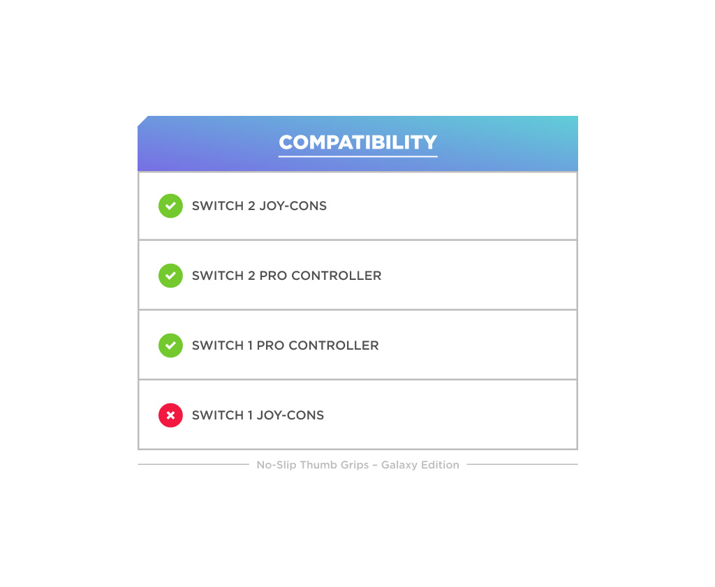 Featuring our best-selling Galaxy design, KontrolFreek® No-Slip Thumb Grips™ – Galaxy Edition utilize proprietary GripTek™ material to deliver maximum grip, comfort, and control in every game you play. Styled to match Nintendo Joy-Con 2 accent colors, this 4-pack adds stellar style and performance to your Nintendo Switch 2 Joy-Cons and Switch 1 & 2 Pro Controllers.