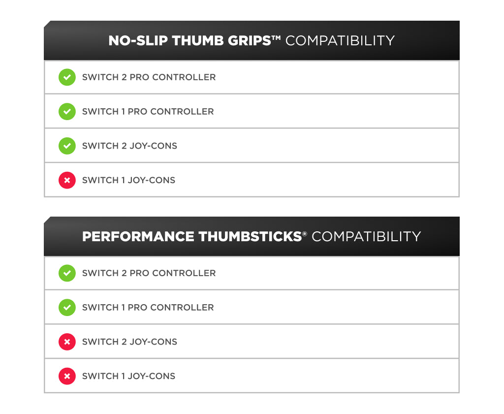 • Performance Thumbsticks compatible with Switch 1+2 Pro Controllers